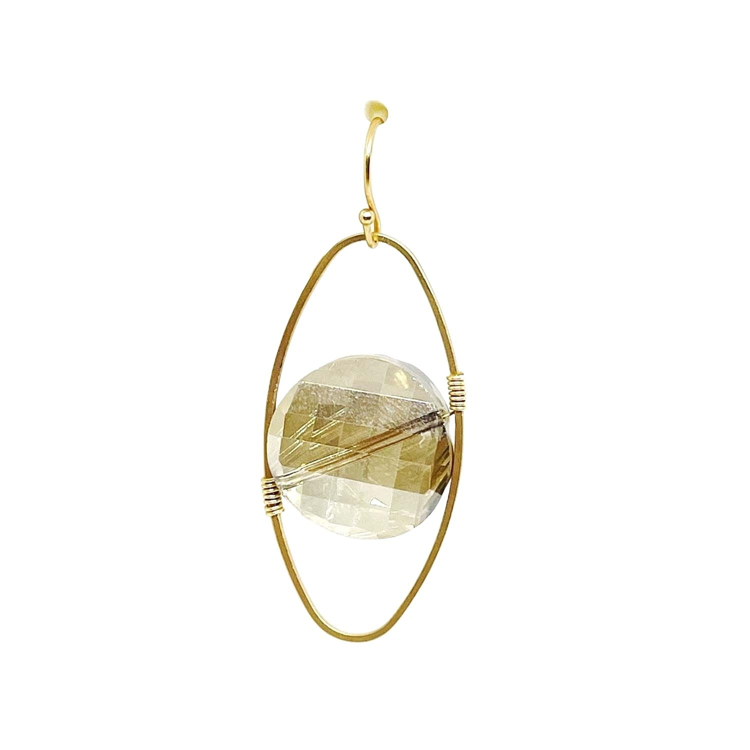 Champagne Coin Crystal Matte Gold Oval Gold Wrap Earrings