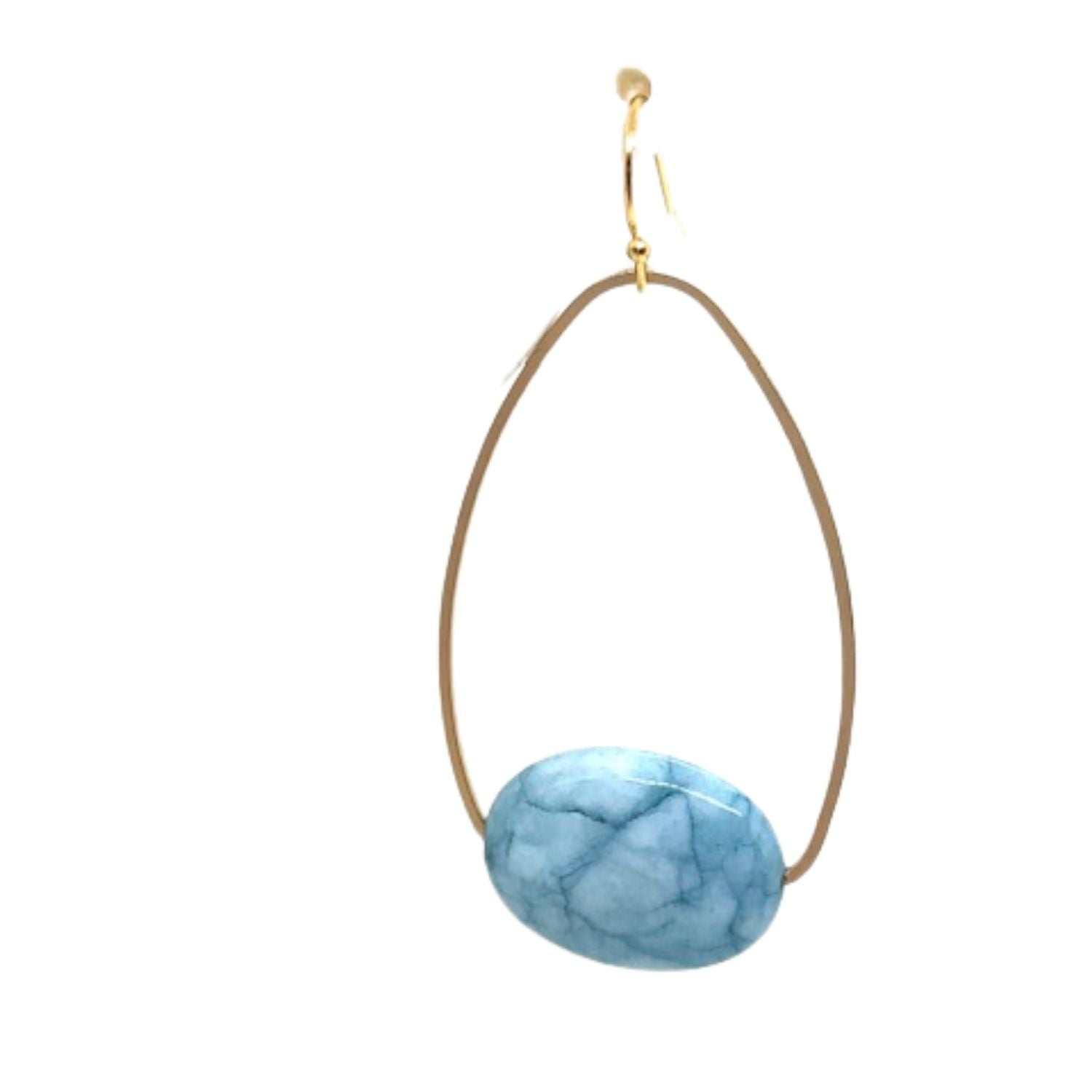 Blue Larimar Oval Inset Oval Matte Gold Earrings