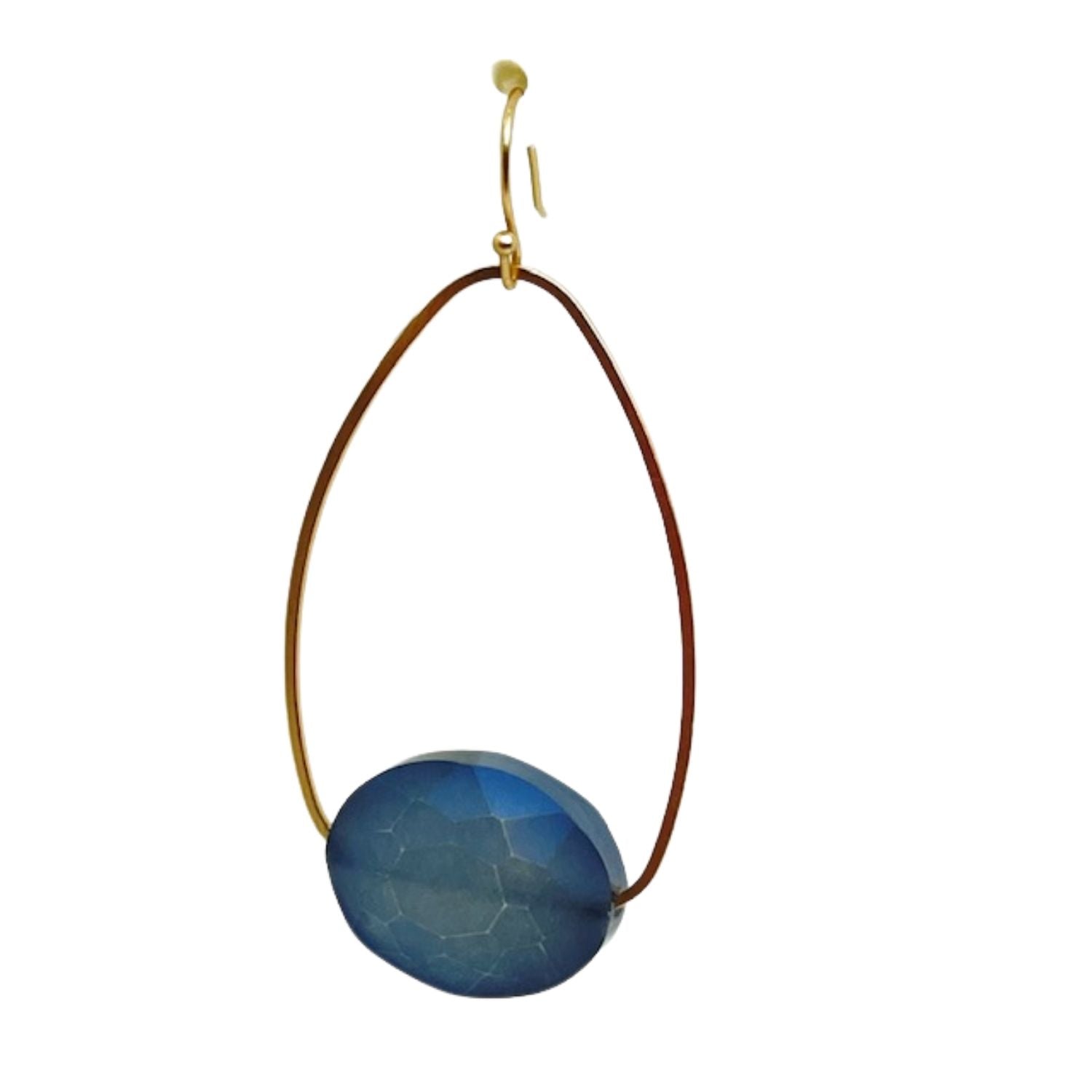 Matte Blue Crystal Matte Gold Inset Oval Earrings