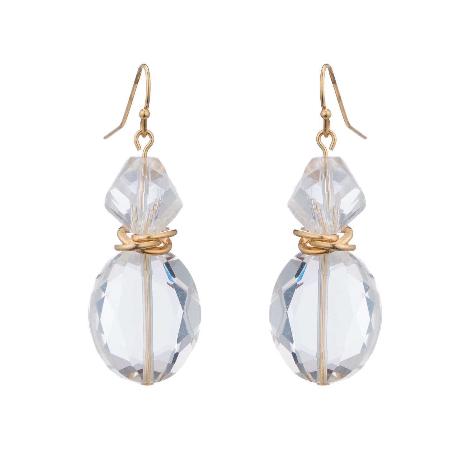 White(Clear)Faceted Crystal Two Stone Matte Gold Earrings