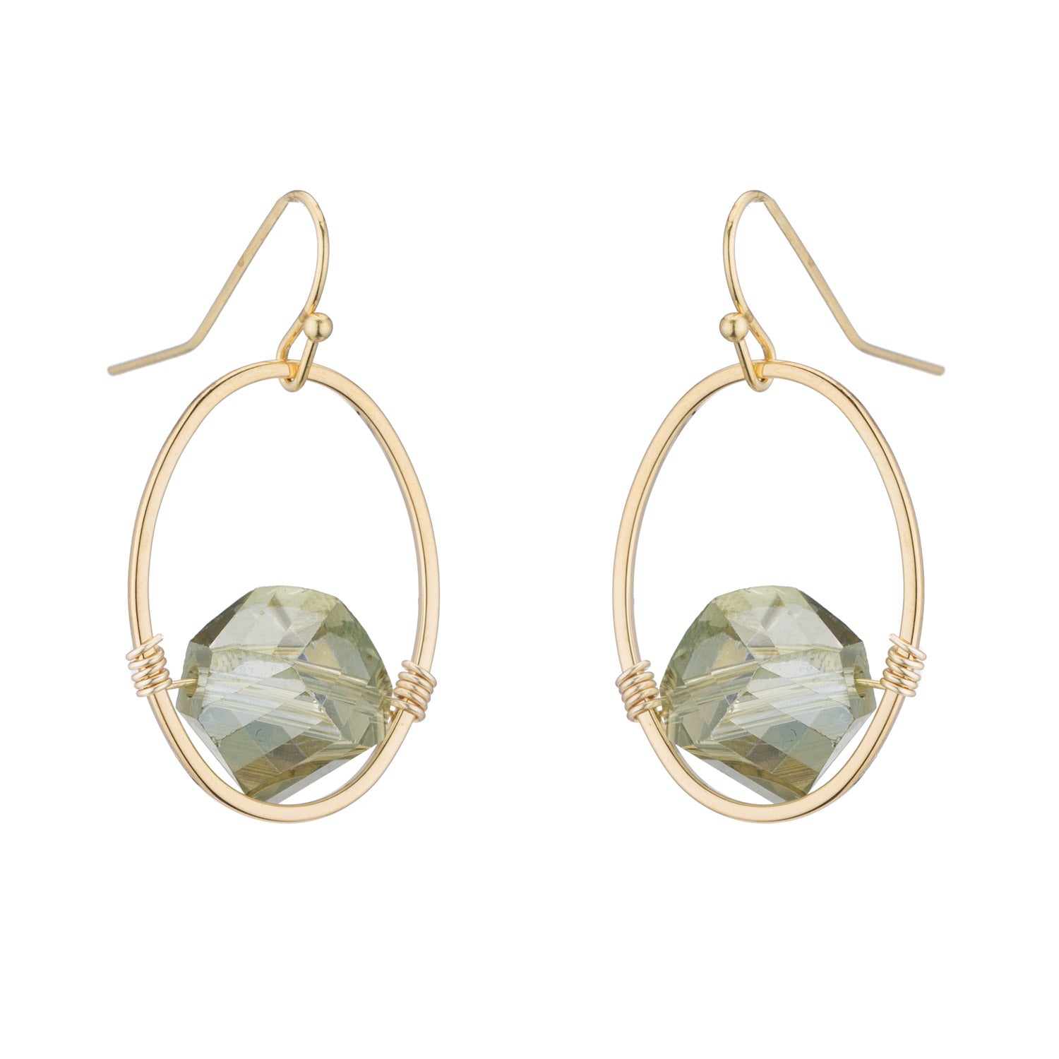 Olive Faceted Crystal Oval Gold Wrap Earrings