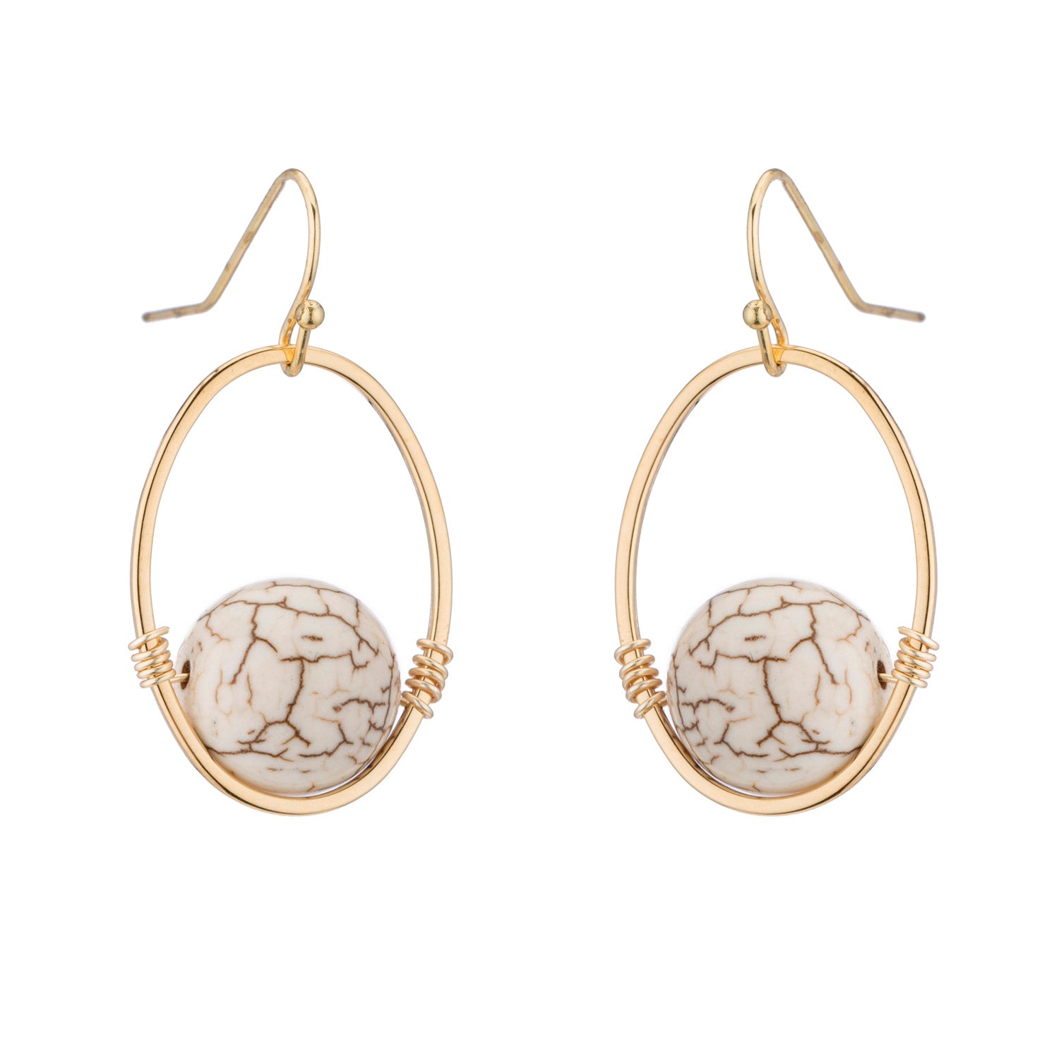 White Magnesite Matte Gold Oval Wrap Earrings
