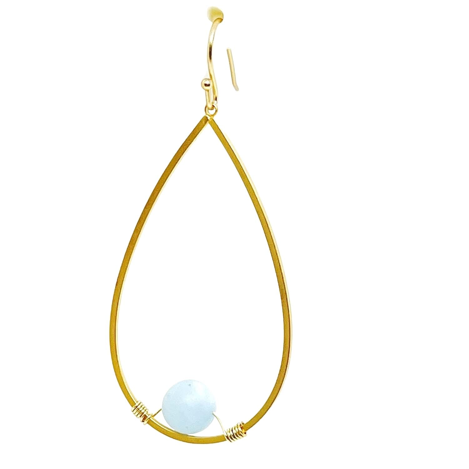 Matte Aquamarine 45Mm Sq Wire Mg Hoop With Gold Wrap Earrings