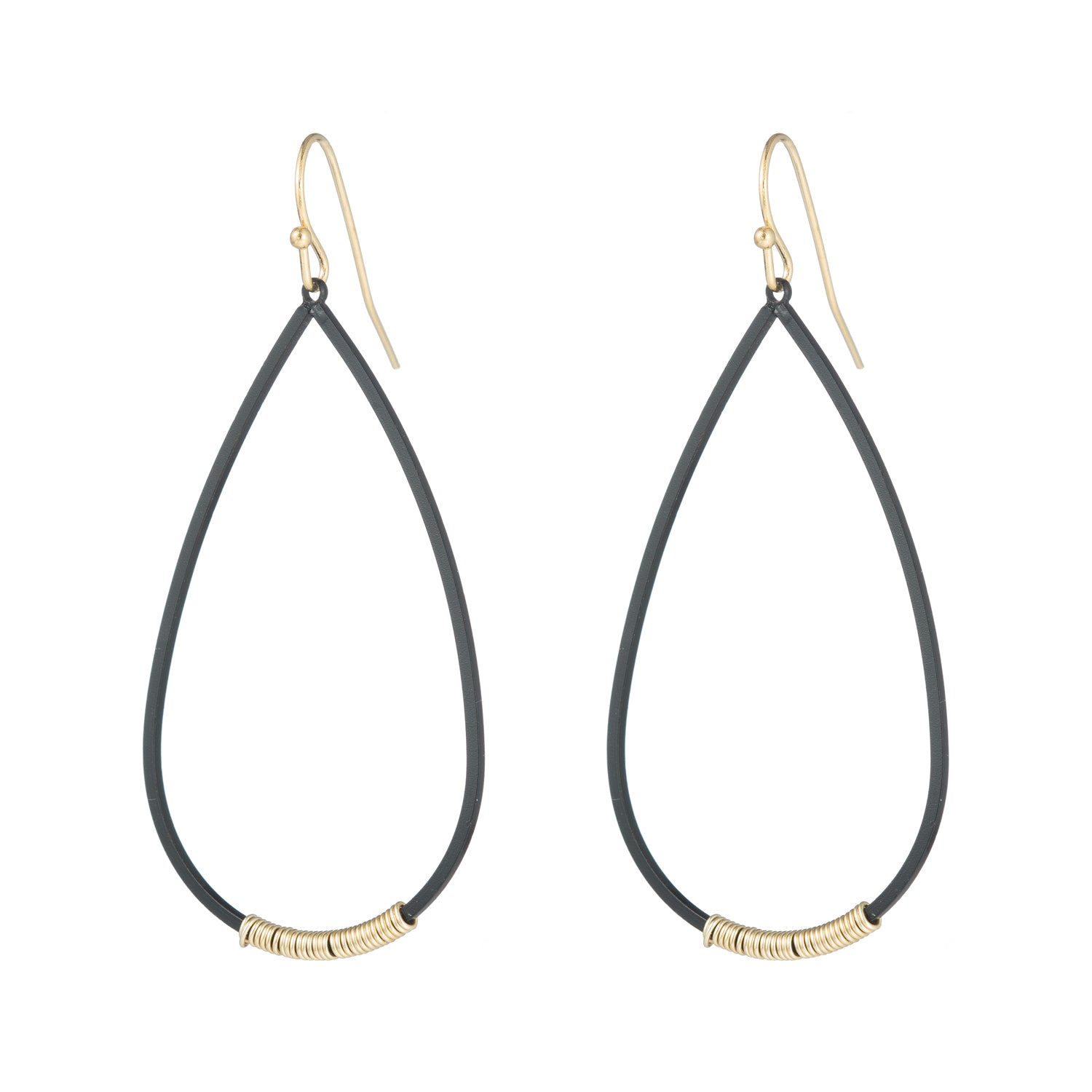 Matte Black Teardrop Gold Wire Wrapped Earrings