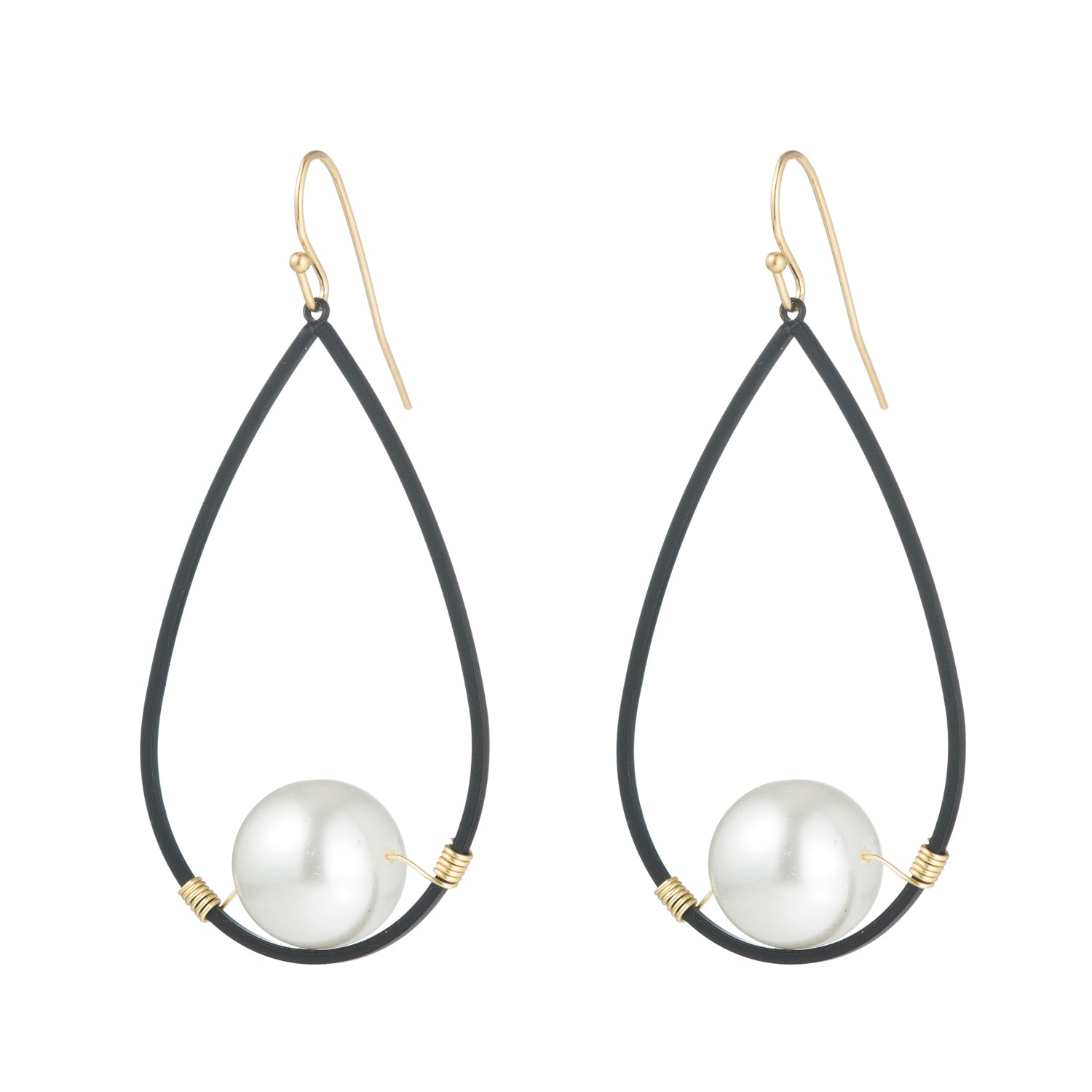 Glass Pearl Matte Black Teardrop Gold Wrap Earring