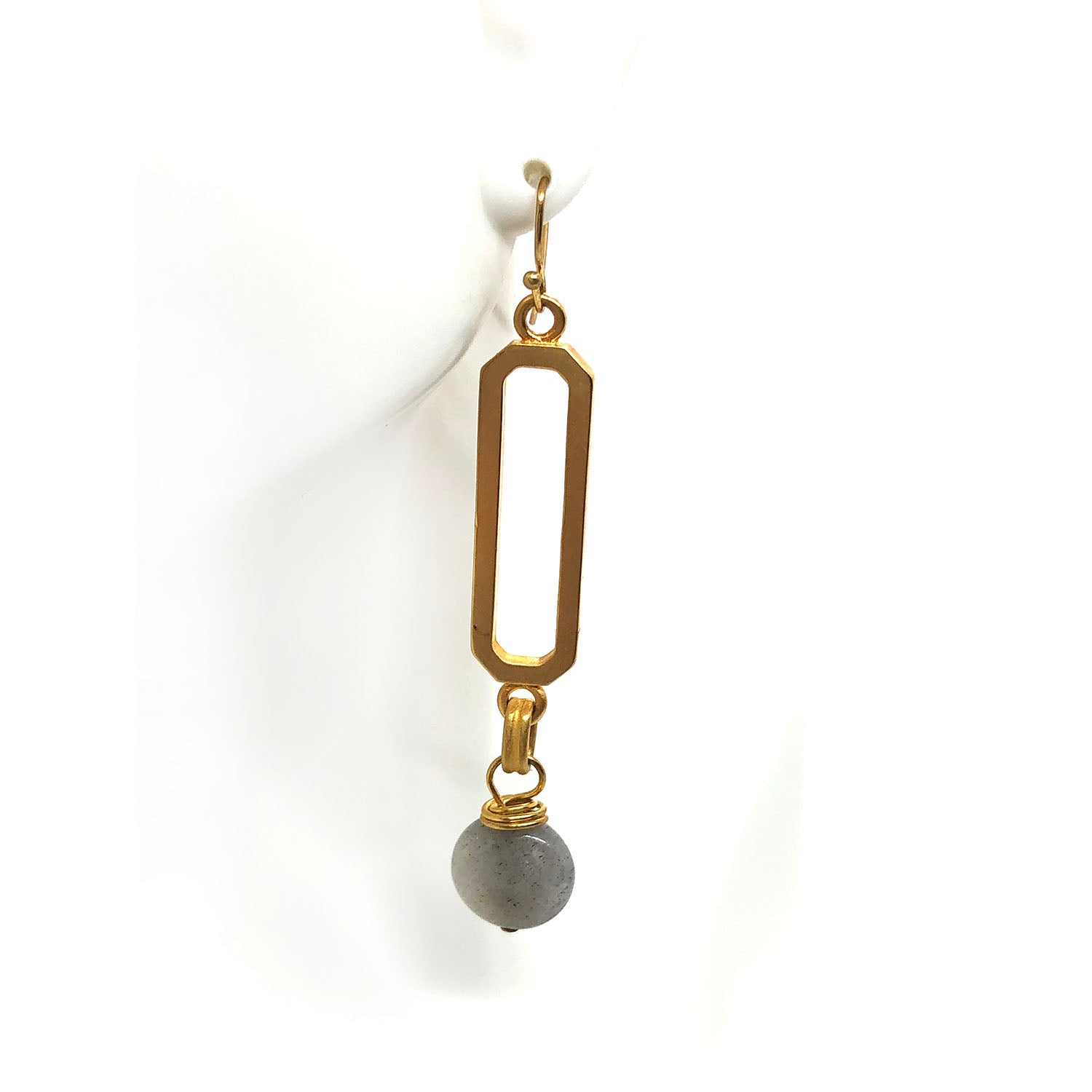 Paper Clip Natural Labradorite Drop Matte Gold Earrings