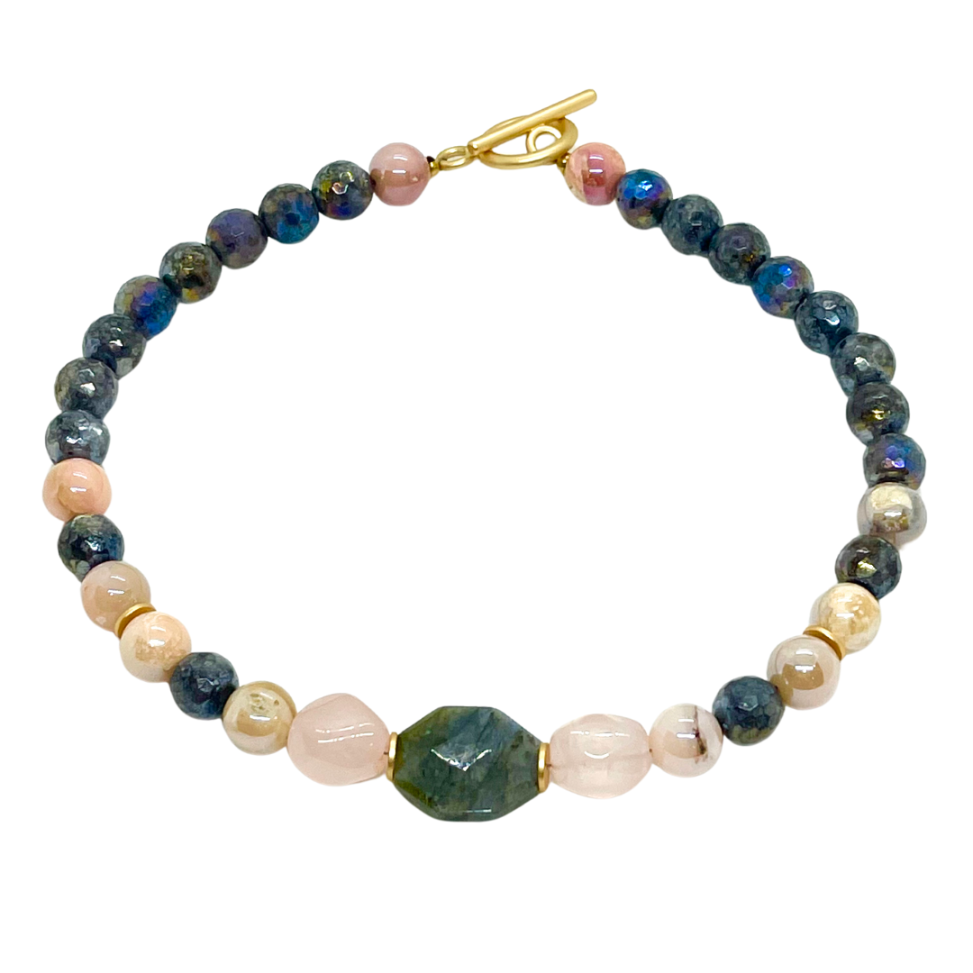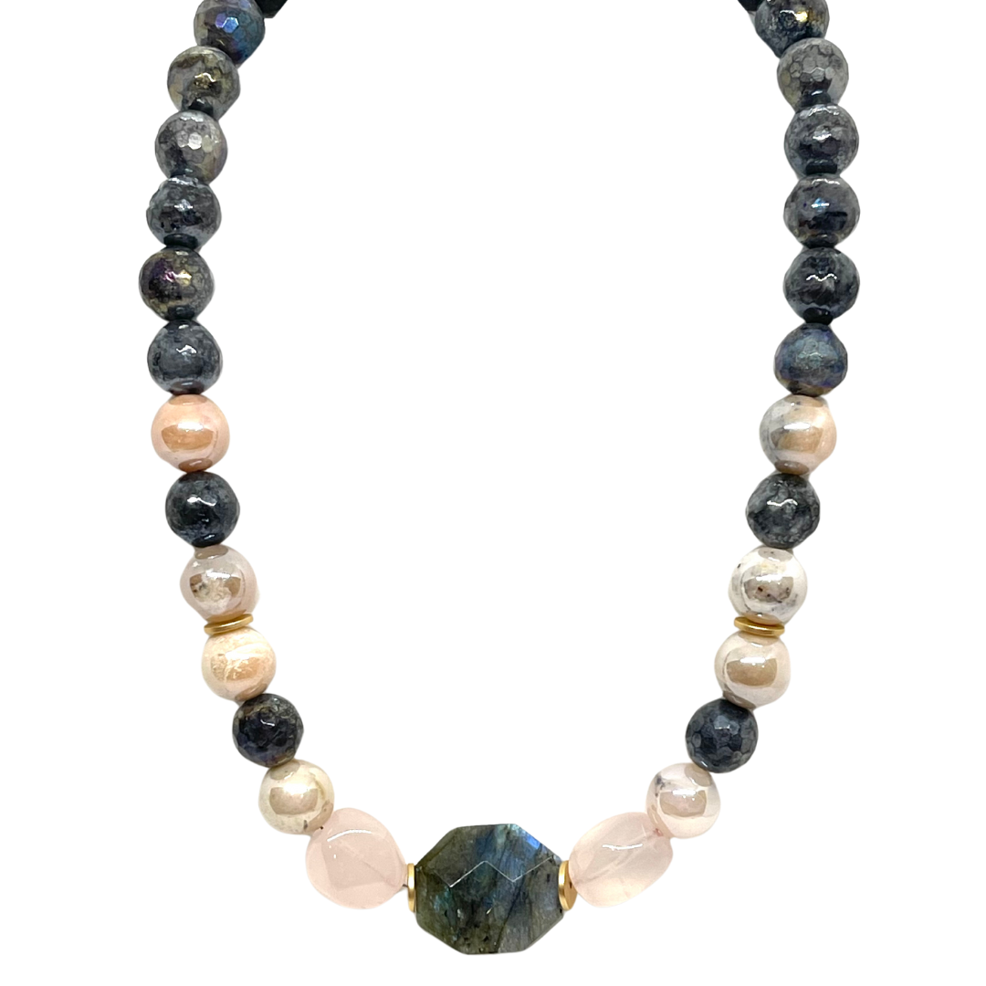 Labradorite, Natural Opal, And Rose Quartz Necklace