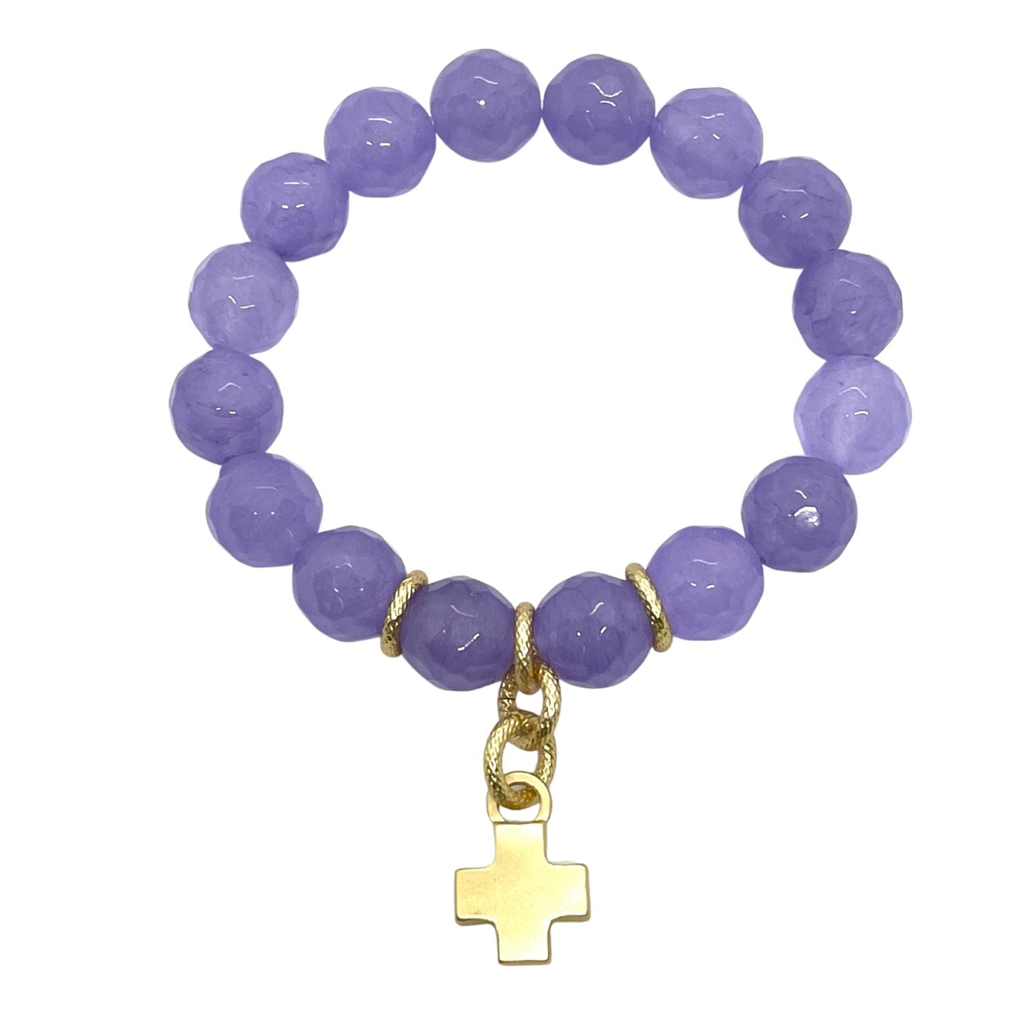 Lavender Jade Stretch Bracelet With Matte Gold Cross