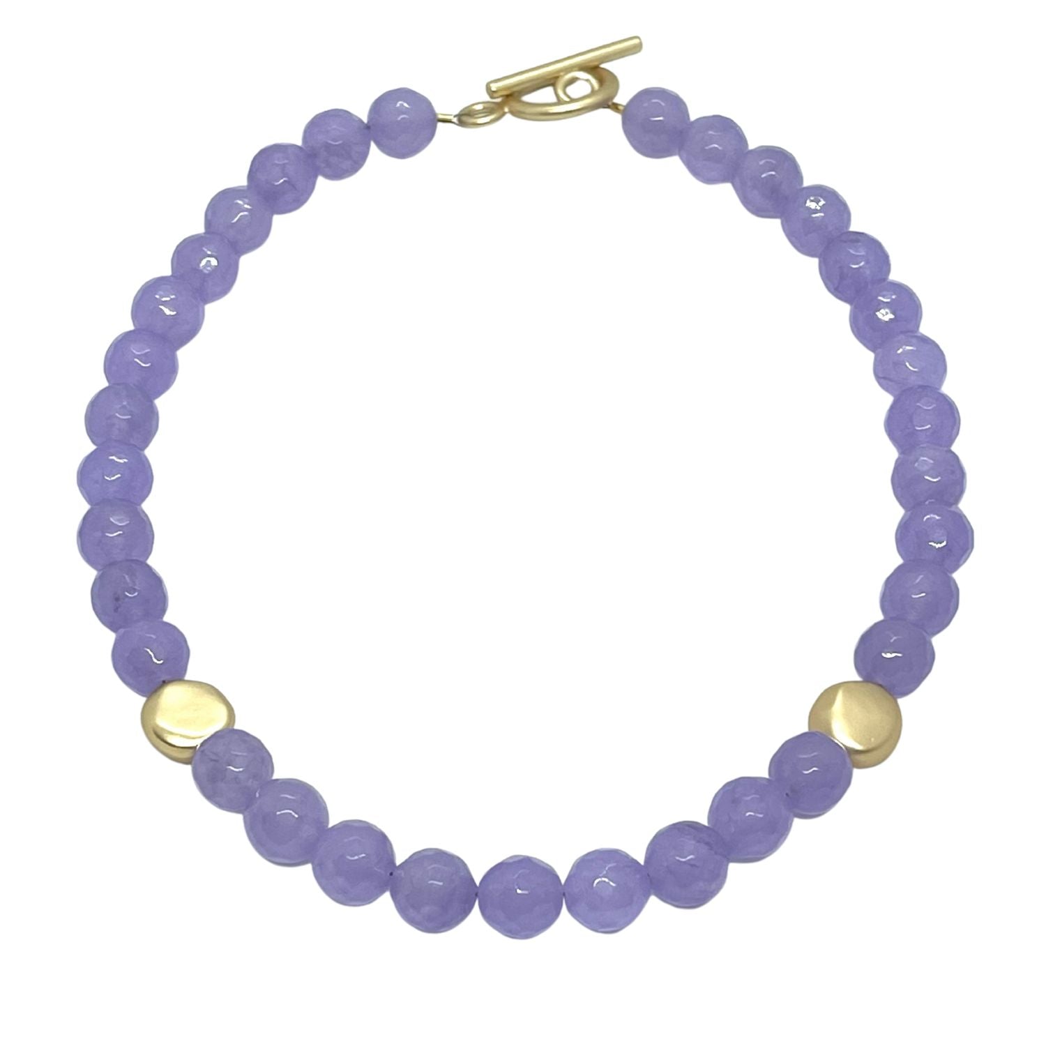 Lavender Jade With Matte Gold Flat Bead Necklace
