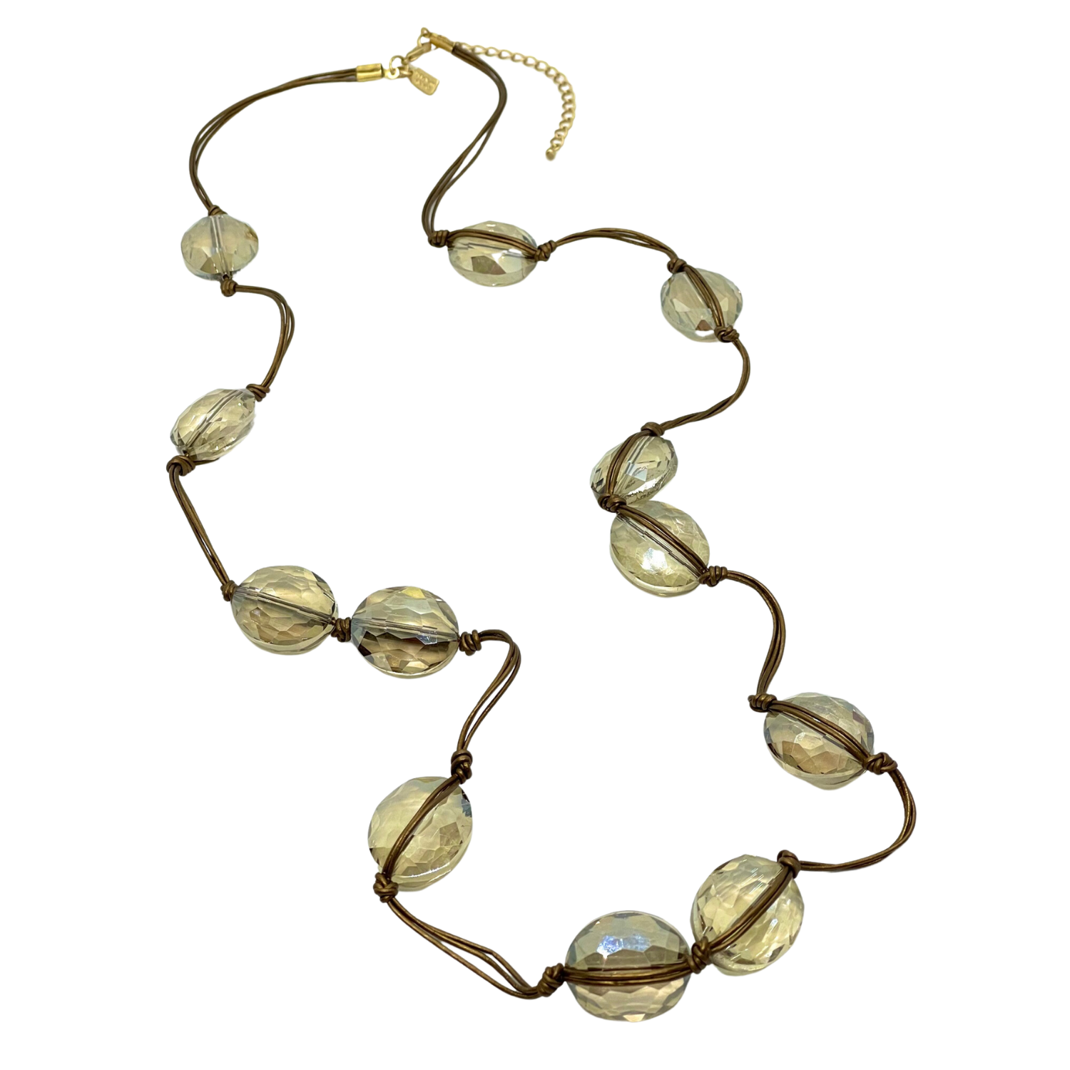 Long Champagne Crystal Necklace on Bronze Leather