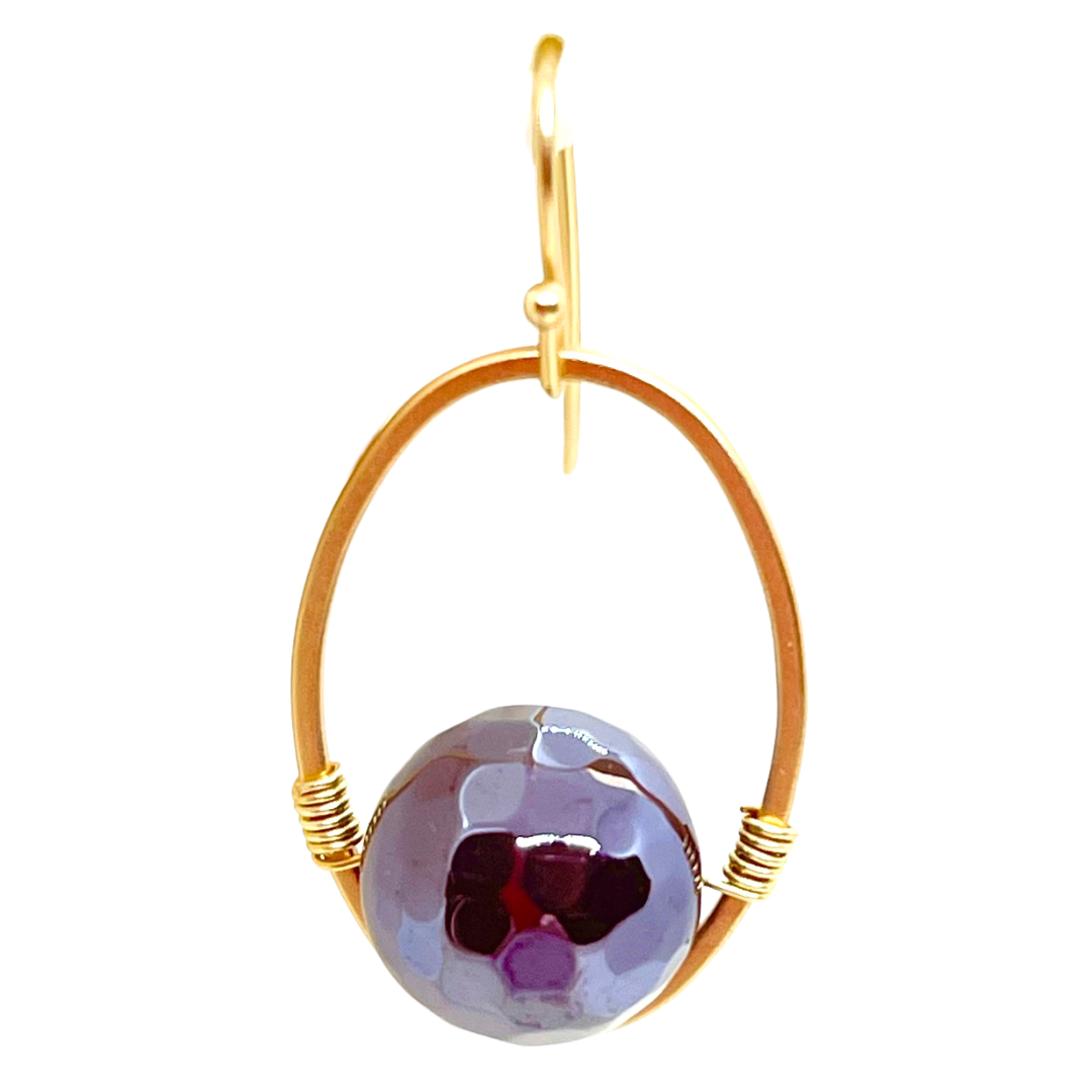 Magenta Agate And Matte Gold Wire Wrap Oval Earrings