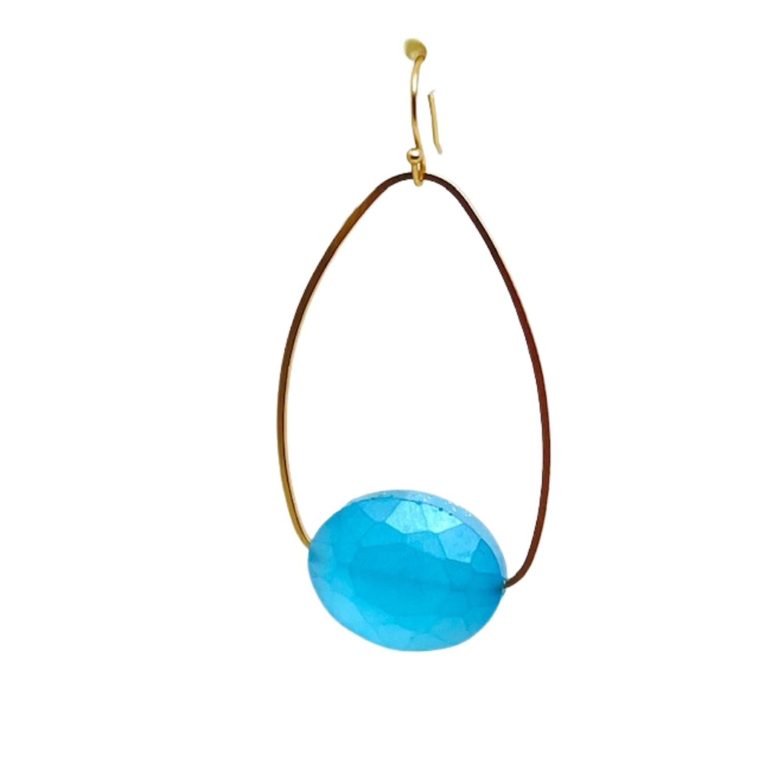 Matte Aqua CrystaL Inset Matte Gold Oval Earrings
