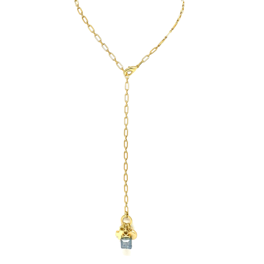 Matte Gold Square Blue Crystal Adjustable Paperclip Three Charm Y Necklace