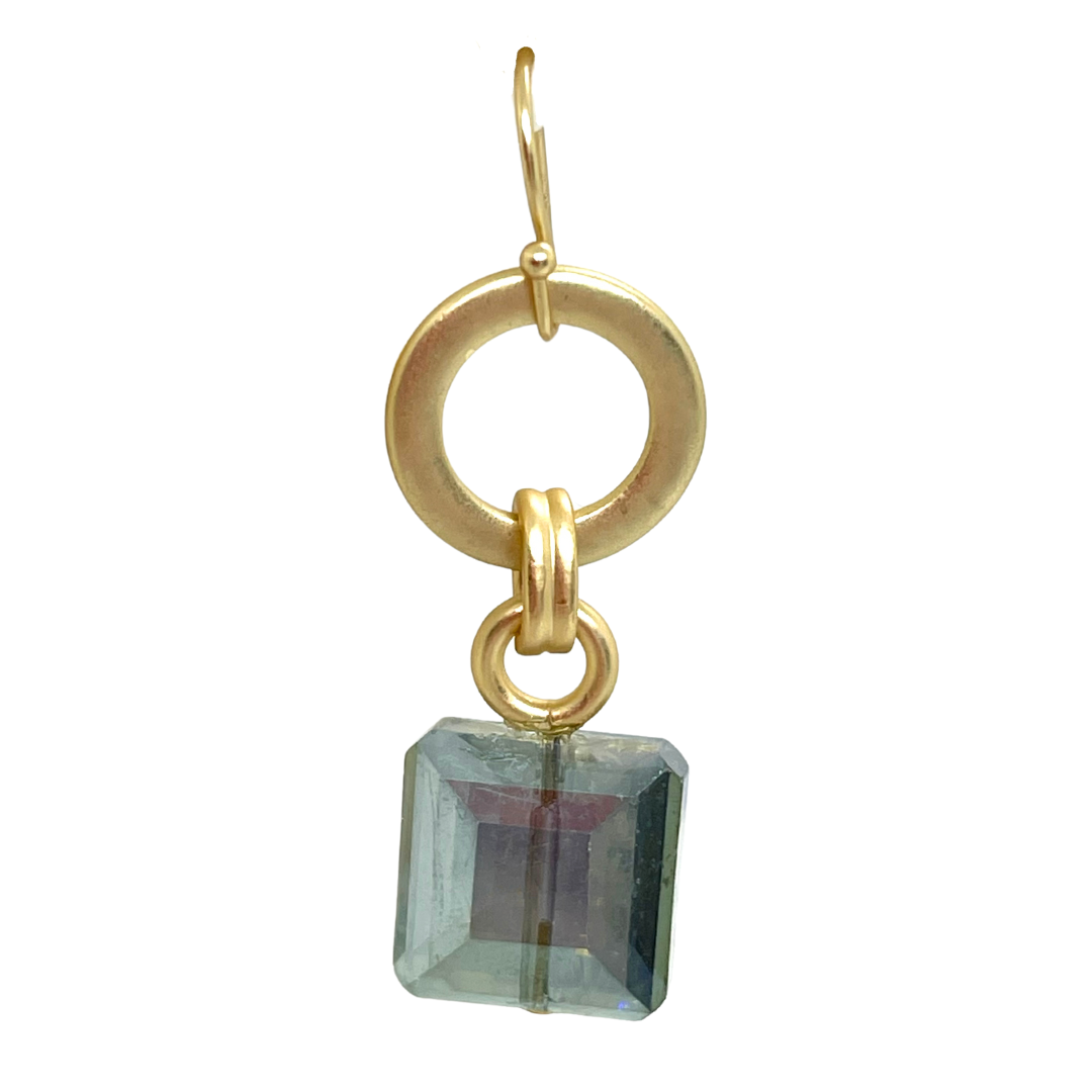 Matte Gold Circle Hoop With Olive Square Crystal Drop Earrings