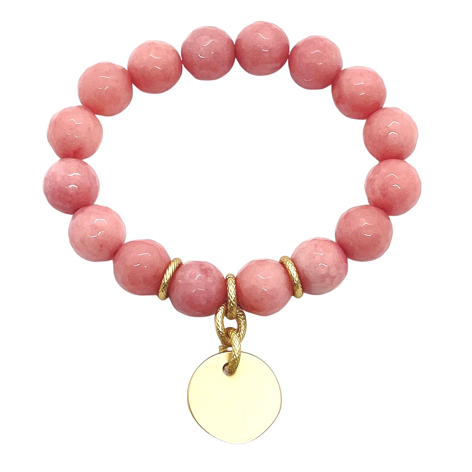 Pink Coral Jade Matte Gold CharmStretch Bracelet