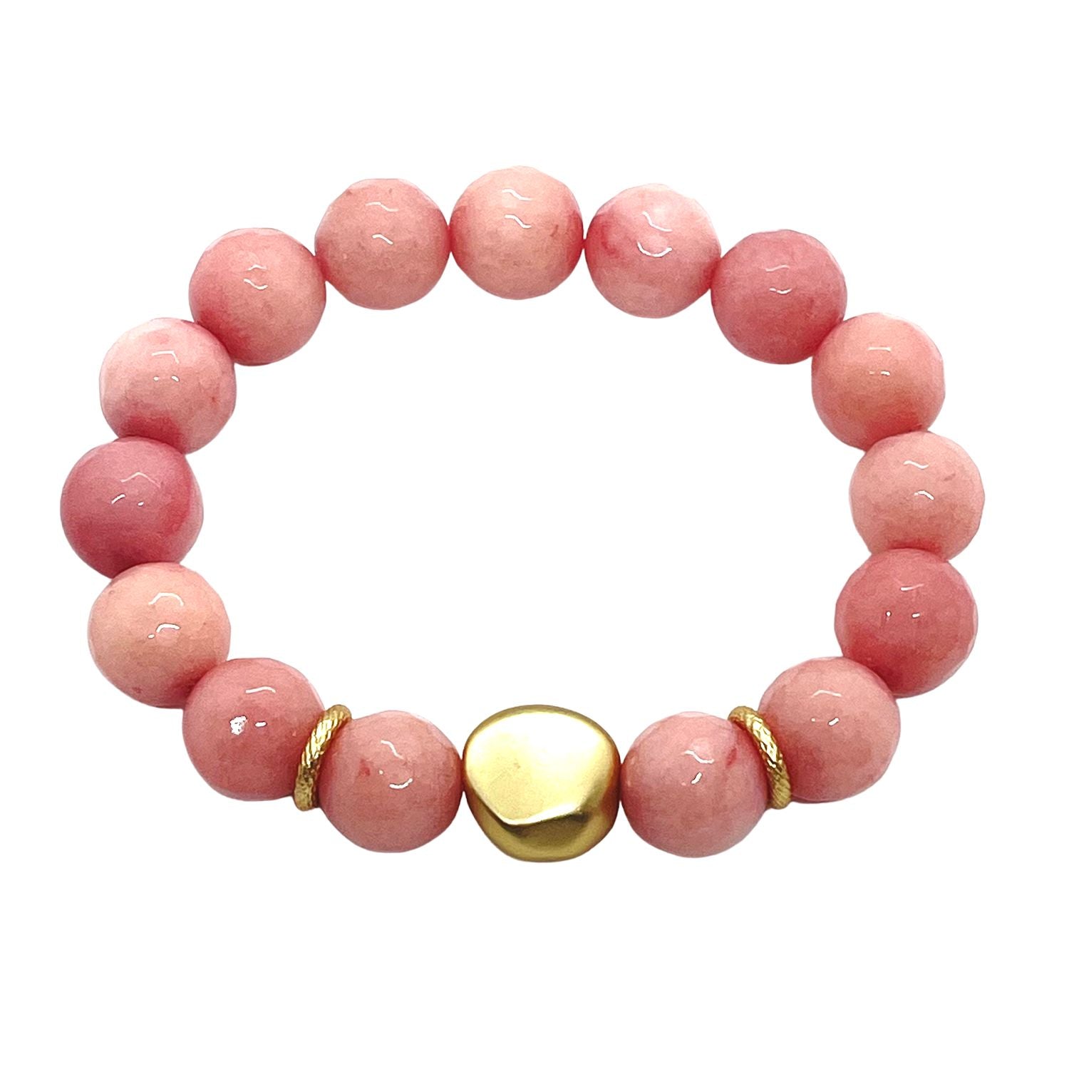 Pink Coral Jade Matte Gold Nugget Stretch Bracelet