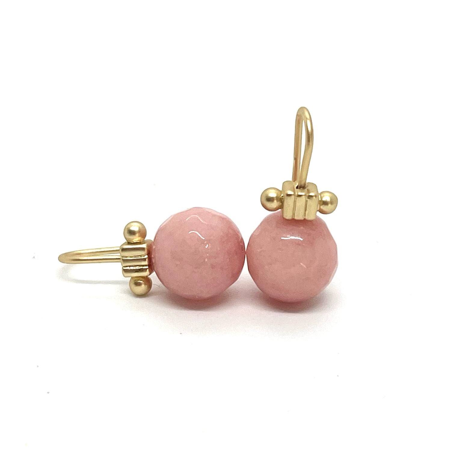 Pink Coral Jade with Matte Gold Column Top Earrings
