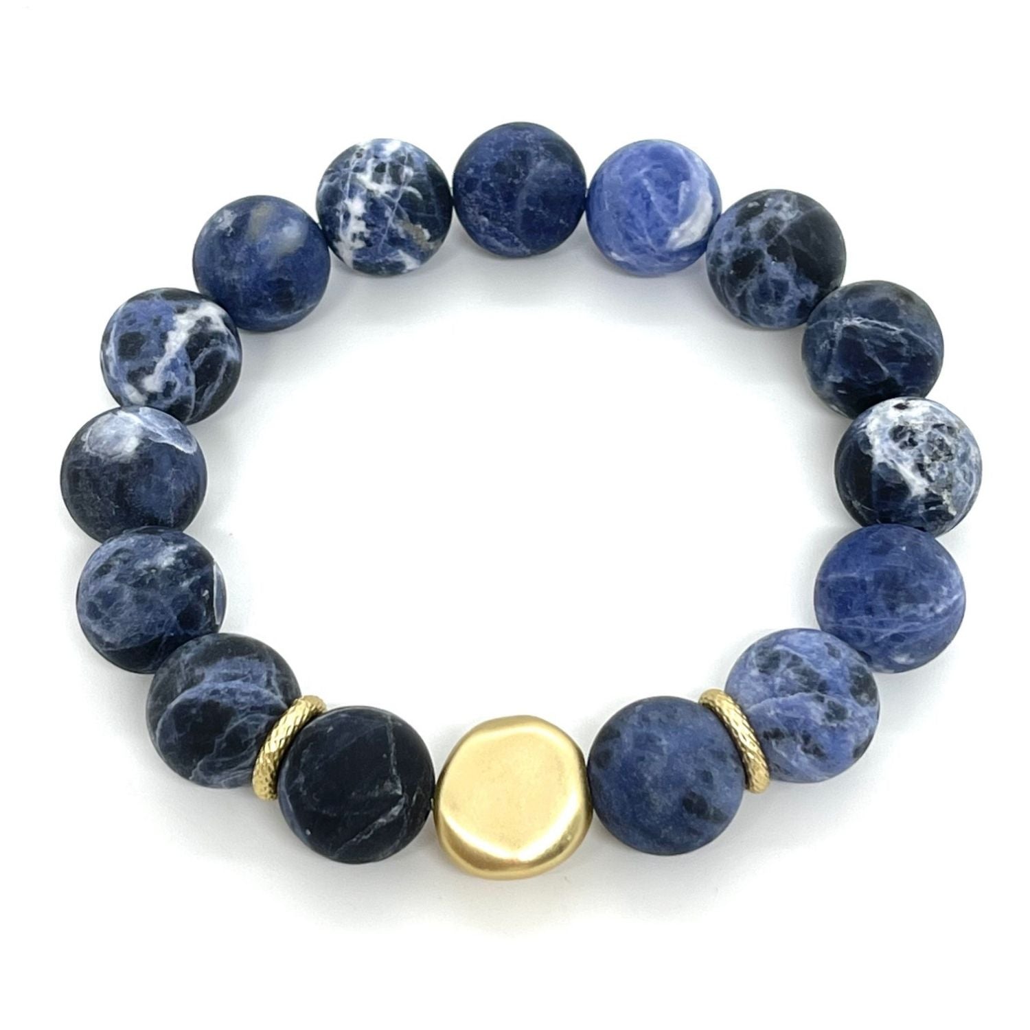 Matte Sodalite Stretch Bracelet With Matte Gold Flat Bead