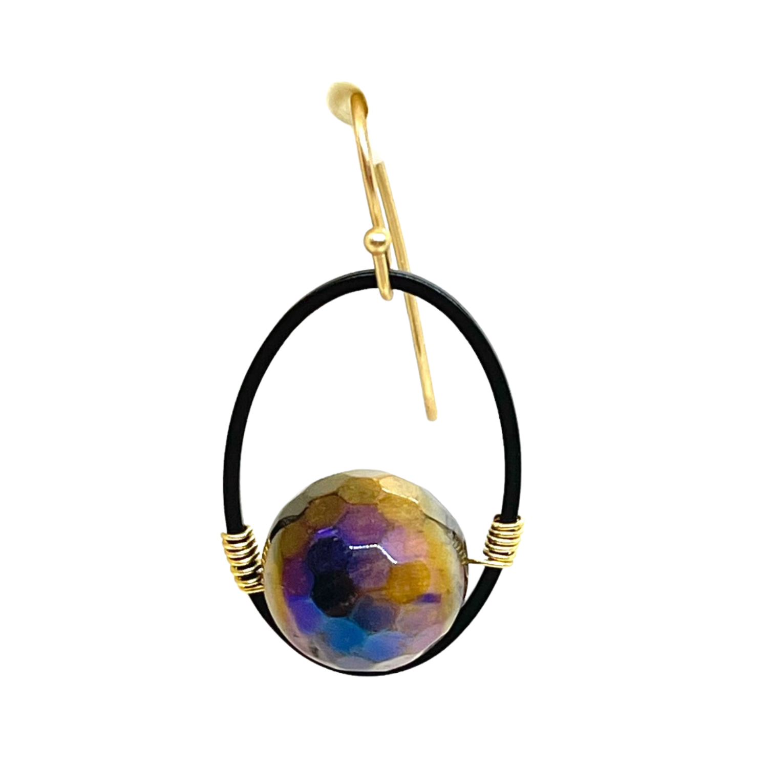 Tigers Eye And Matte Black Oval Gold Wire Wrap Earrings