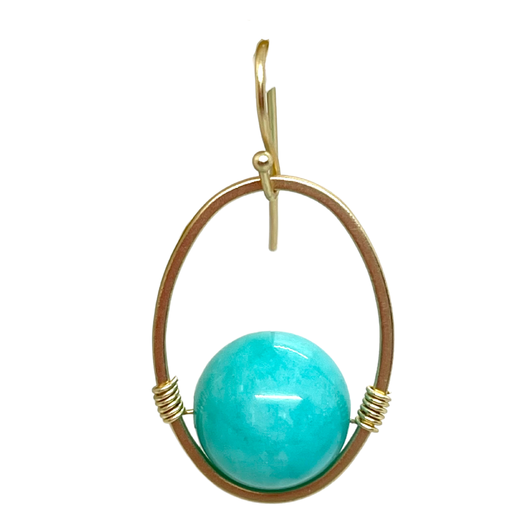 Turquoise Jade And Matte Gold Wire Wrap Oval Earrings