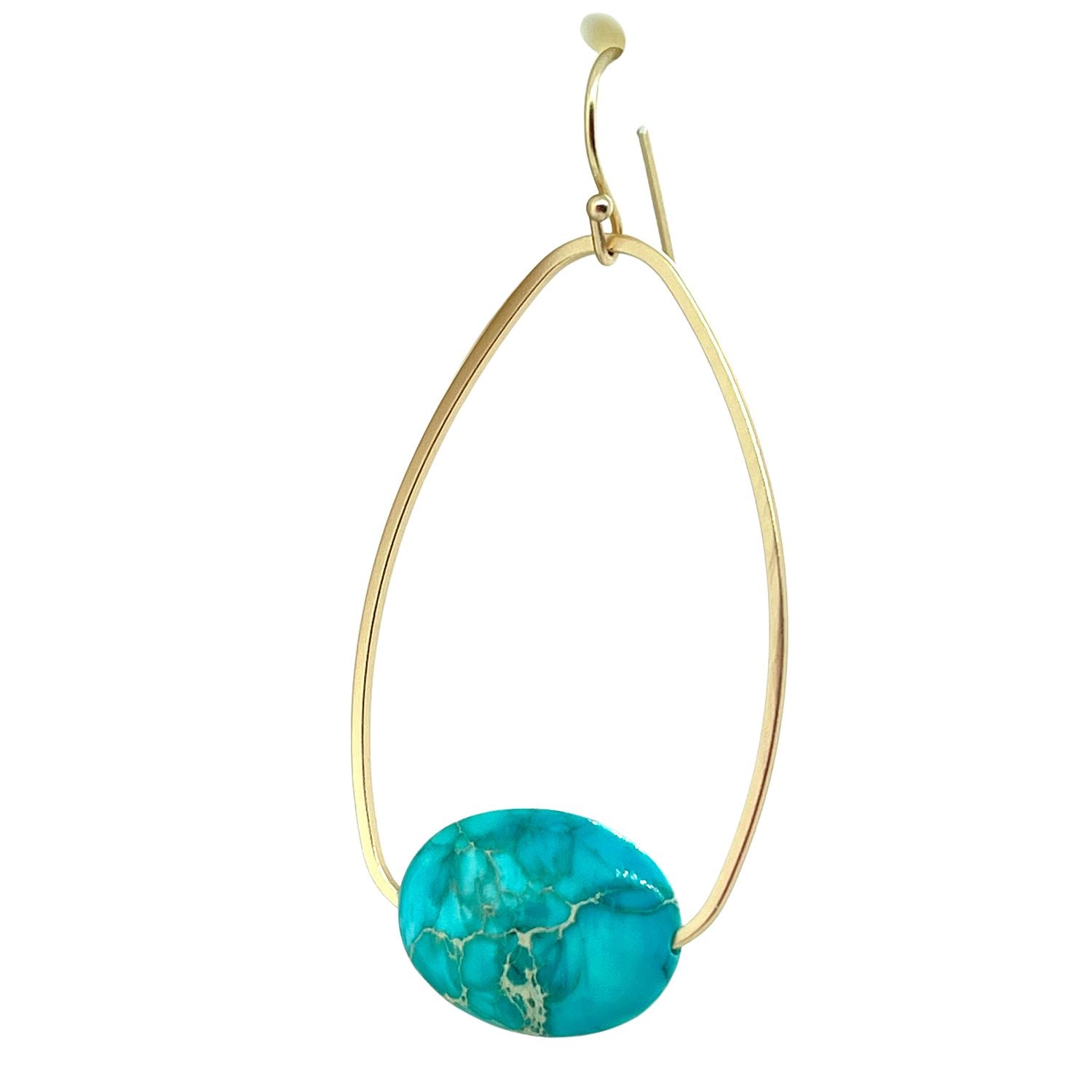 Turquoise Aqua Terra Jasper Matte Gold Oval Inset Earrings