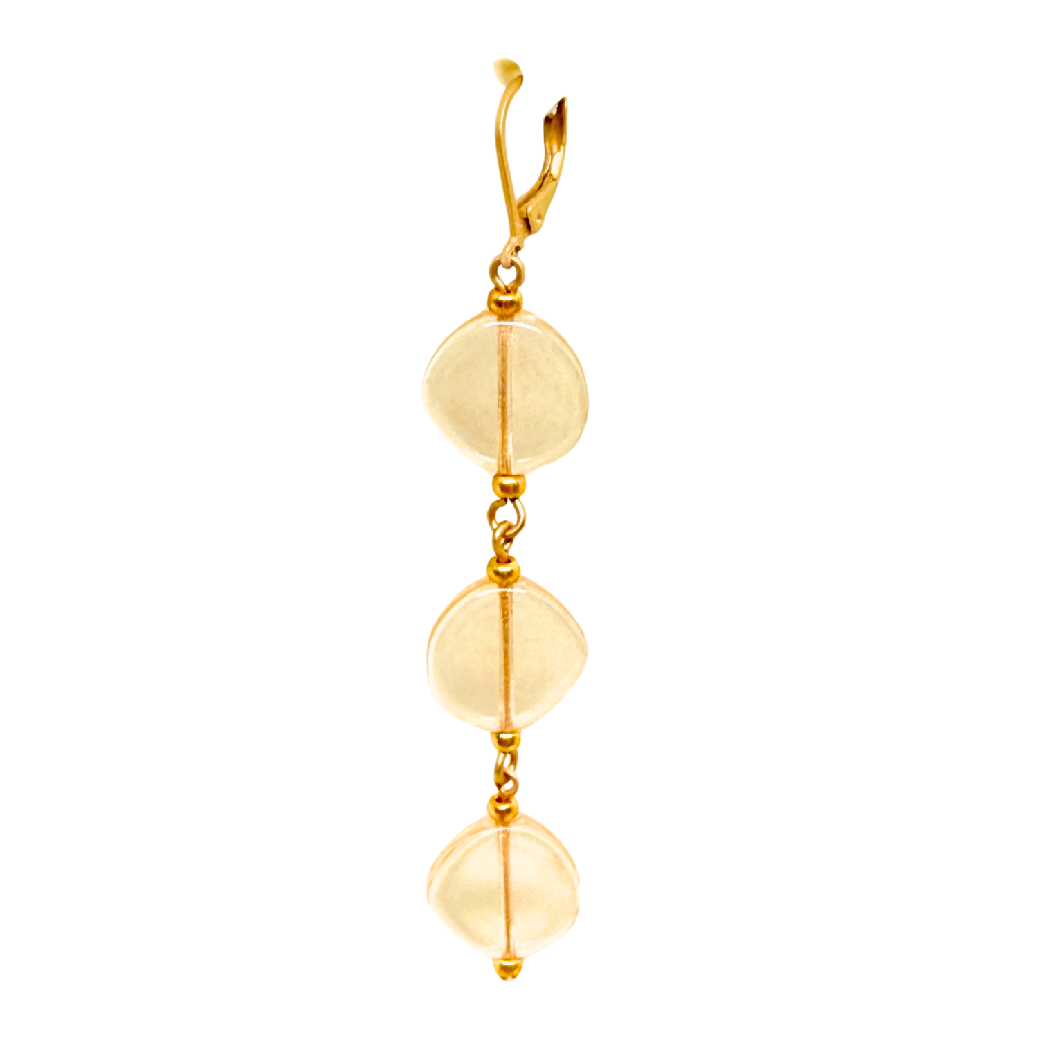 Yellow Pressed Glass Coin Line Earrings on Lever Back